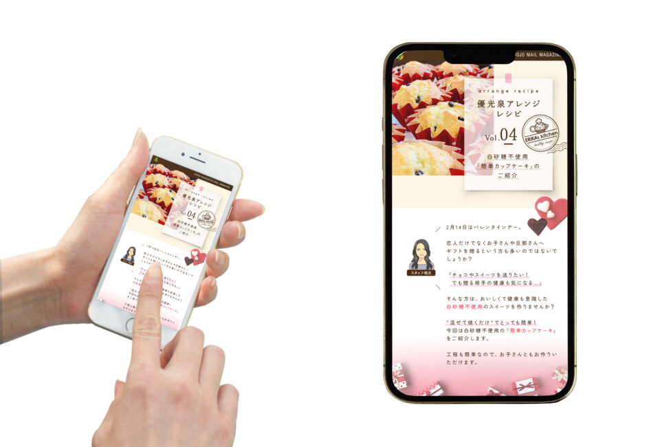 Recipe Vol.04 来週はバレンタイン!白砂糖不使用の簡単カップケーキを作ってみませんか? アレンジレシピメルマガ2024年2月8日配信バレンタインをイメージできるデザインで作成 バレンタインにも健康を意識したスイーツを!という内容を意識して内容を作成しました メールマガジンの詳細はこちらからご覧ください 2024年2月8日 投稿先 Recipe ← 過去の投稿へ 次の投稿へ →